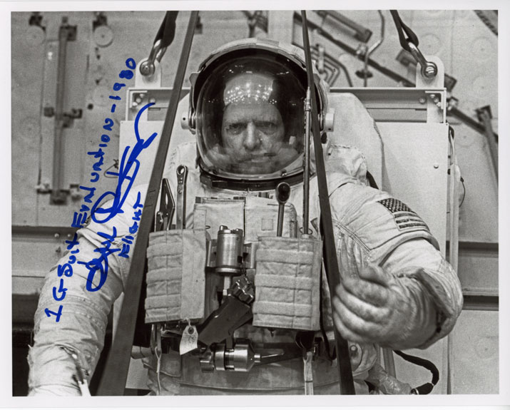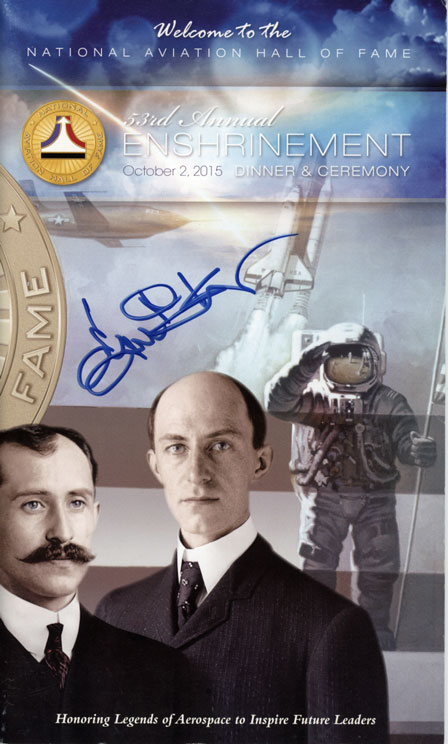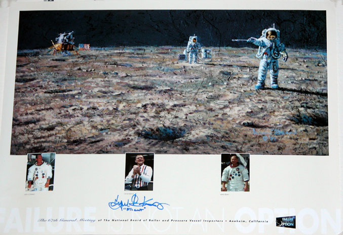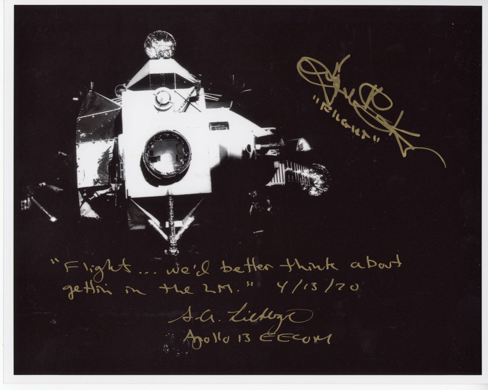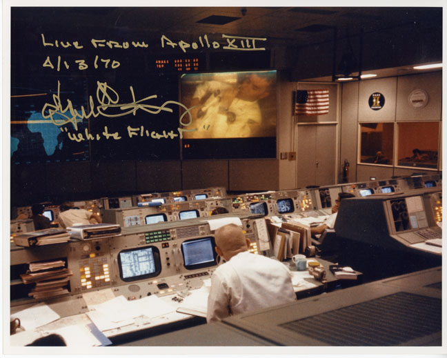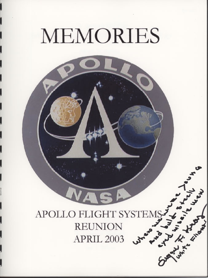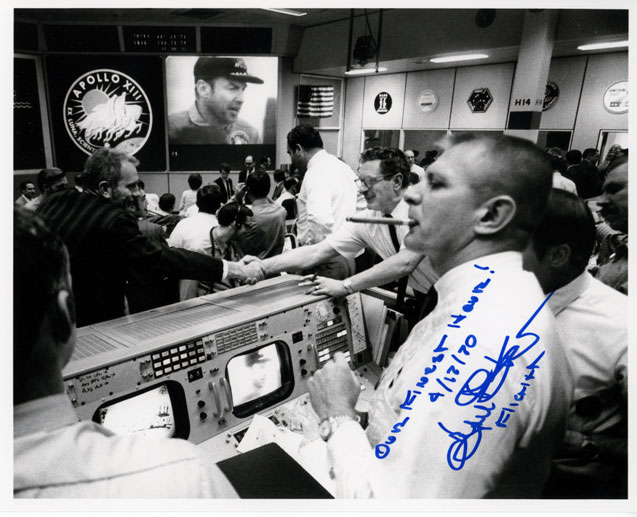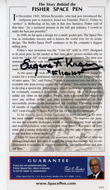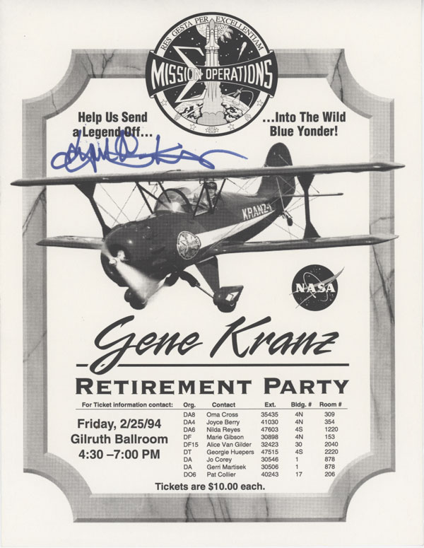 Gene has hand signed the front of this invitation in bold black sharpie just over his printed name. Very nice associational item of Apollo XIII from the archives of the Flight Director himself.