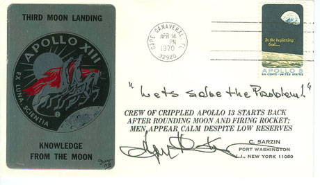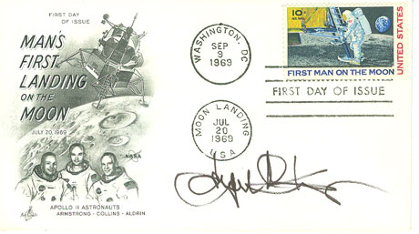 Eugene Kranz hand signs this very vintage Man On The Moon Card #SpaceShot card (#0169) showing the Apollo 13 launch.