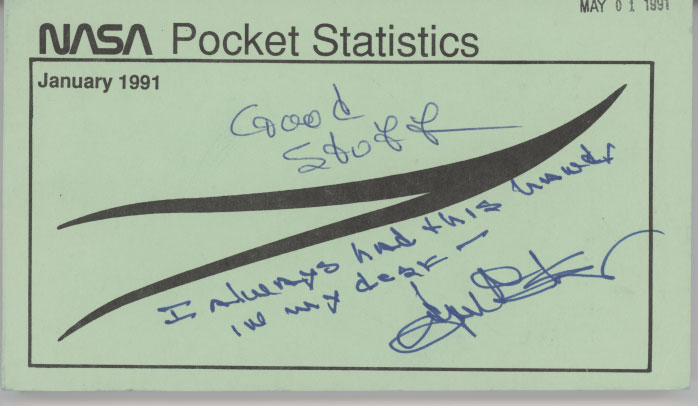 This elegant bookmark was presented to Gene Kranz during his "Failure Is Not An Option" book signing tour. As you can see in the scan it's engraved with Gene's name and April 18th, 2000. The book store, Tattered Cover (Denver, Co) is also engraved at the bottom.