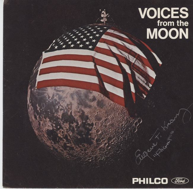 Offered here is Gene Kranz's copy of "Voices from the Moon". Produced by Philco, this is a "flexible" record invitation to the Wings Over The Rockies Gala honoring the flight of Apollo XIII. This invitation has not been opened and still has it's Apollo XIII seal on the back flap. It is addressed to Gene Kranz but as you can see, I've placed a post it note over his address that can be easily removed by it's new owner.