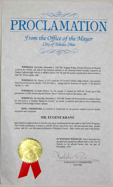 Eugene F. Kranz. Gene is also the author of the best selling autobiography “Failure