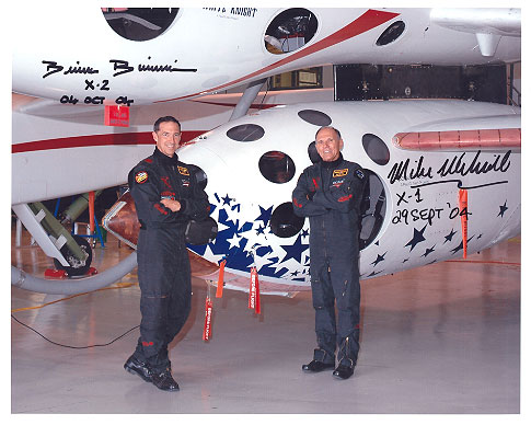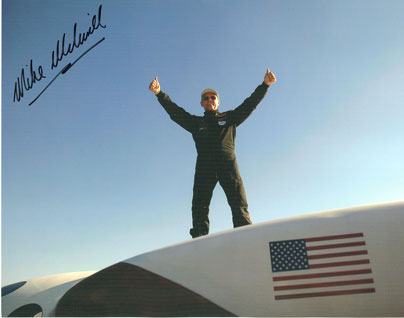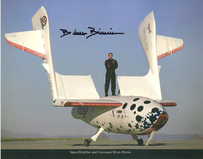 Obtained by Ed Gibson at a public signing event, this 8 x 10 photograph is authentically hand signed by Brian Binnie.  Ed has held it in his personal collection from the time it was obtained.  A few minor indentations from handling that do not distract.