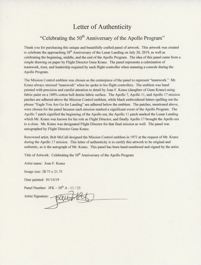 Produced by premiere medallion maker Winco International (Winco) who certify that the metal included in the Apollo 45th Anniversary Medallions is taken from Apollo Command Modules that flew to the Moon. Various undefined flown metal types and percentages have been used in the production of these medallions.  The edition is limited to 1000 medallions.  Packaged on a beautiful display card and with unquestionable provenance.