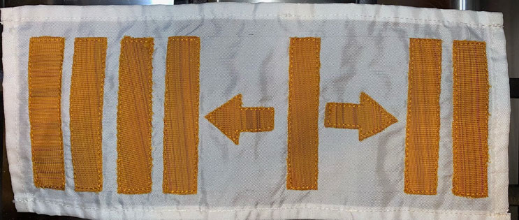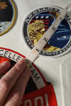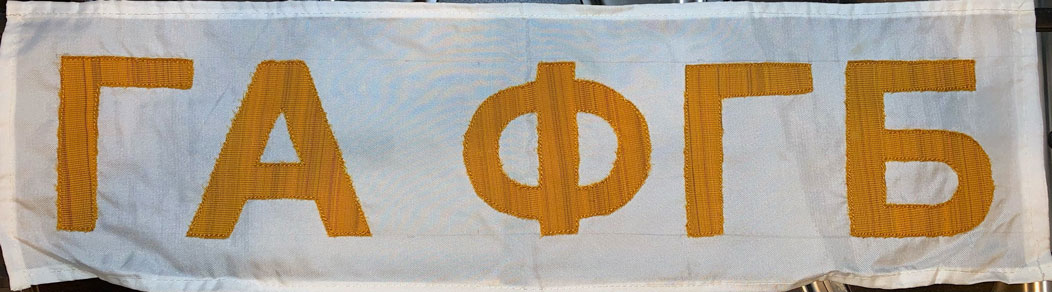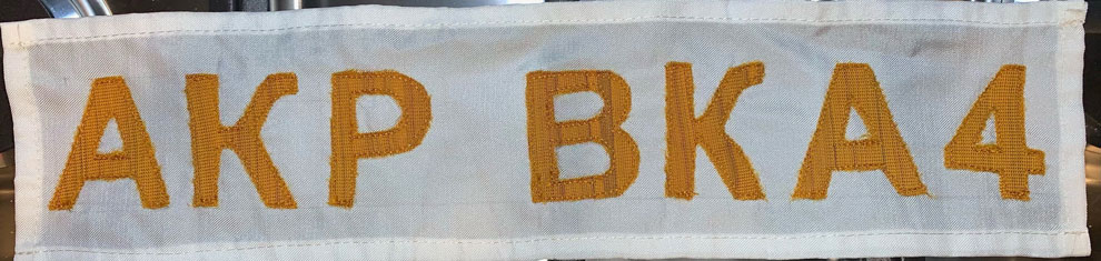 The Russian built FGB was the first building block element of the International Space Station (ISS).  The external insulation of the FGB is a cloth-like material; consequently, the external equipment labels are a beta-like cloth and sewn on by stitching specialists.