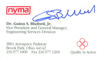 Business Card hand signed by Bluford in blue sharpie.