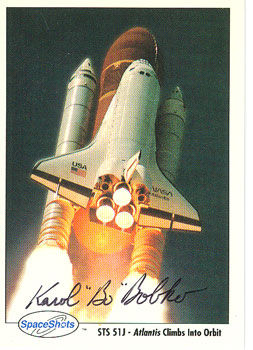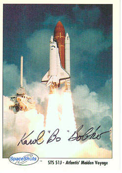 Autographed Space Shot card #0184 showing launch of STS 51-J.