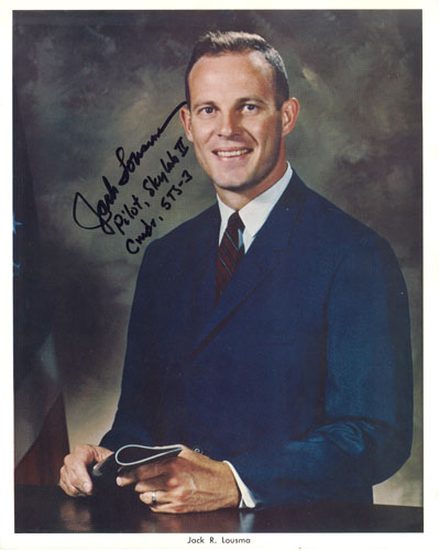NASA press release glossy showing Lousma in