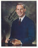 NASA litho showing Lousma in business suit.